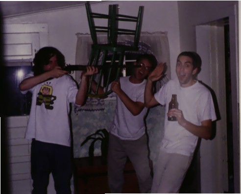 Den. I was armed with a shotgun, and Beard-o with a wooden chair.