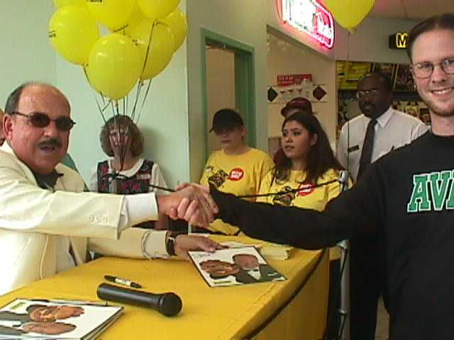 Gene has a burger in his palm!  Watch out!